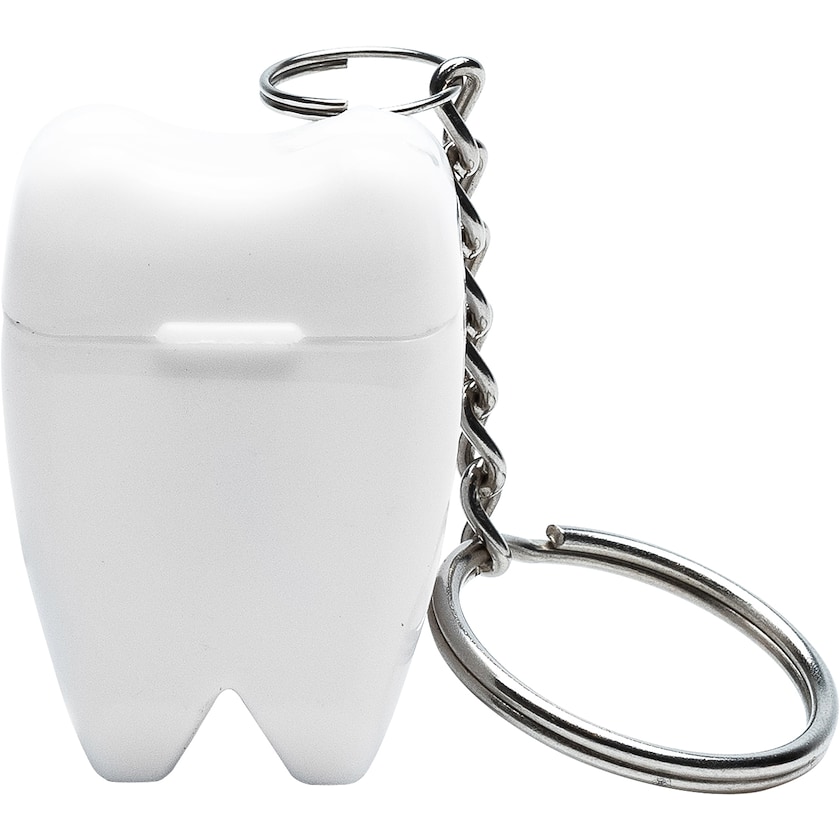 Nyckelring formad som en tand som innehåller 5 meter tandtråd. Ser till att tänderna hålls fräscha oavsett var man befinner sig. En utmärkt profilprodukt för tandläkare.