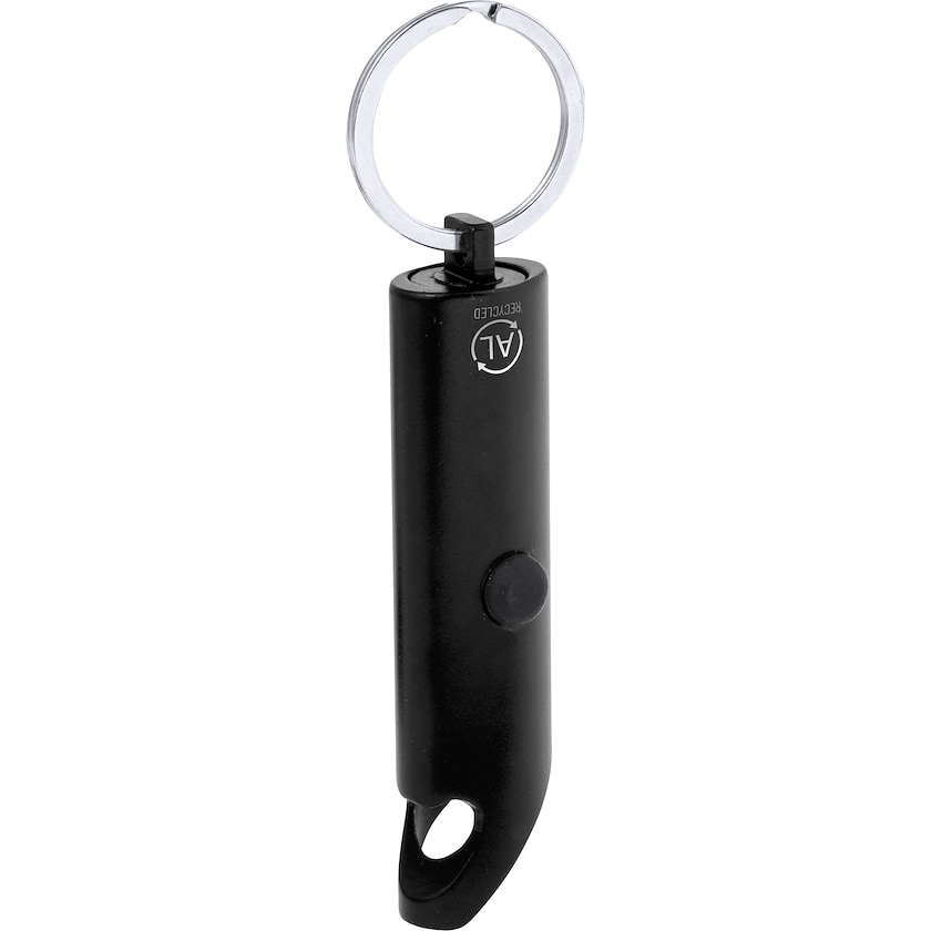 Liten LED-nyckelring av återvunnen aluminium. Fungerar även som kapsylöppnare. Trycket kan ske i maximalt två färger.