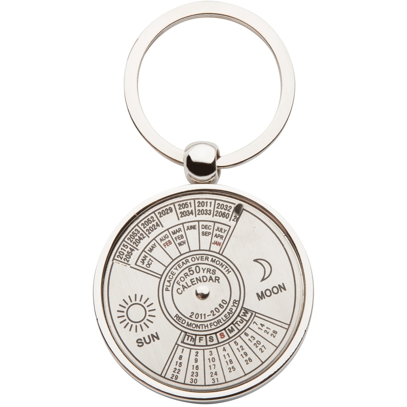 Nyckelring av metall med roterande kalender. Kalendern sträcker sig ända fram till år 2060. Levereras i en svart papplåda. En fin och tidlös gåva!