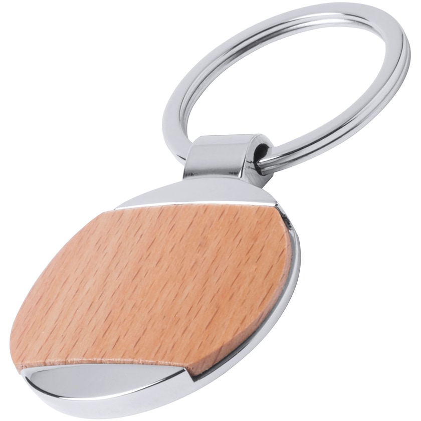 Rund nyckelring av metall med inlägg av äkta trä. En vacker nyckelring med ett unikt utseende!