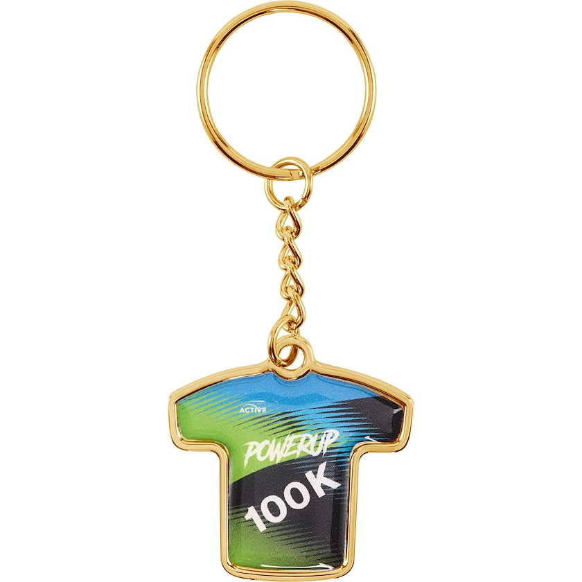 Nyckelring formgiven som en matchtröja som är försedd med kedja. Team Shirt Chain är tillverkad av metall och kan fås i färgerna guld, silver och brons. Ditt motiv digitaltrycks och placeras under ett skyddande epoxylager. Nyckelringarna levereras individuellt förpackade i silkespapper.