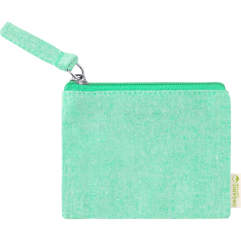 Liten börs av 100% återvunnen bomull. Börsen har ett dragkedjeförsett förvaringsutrymme.