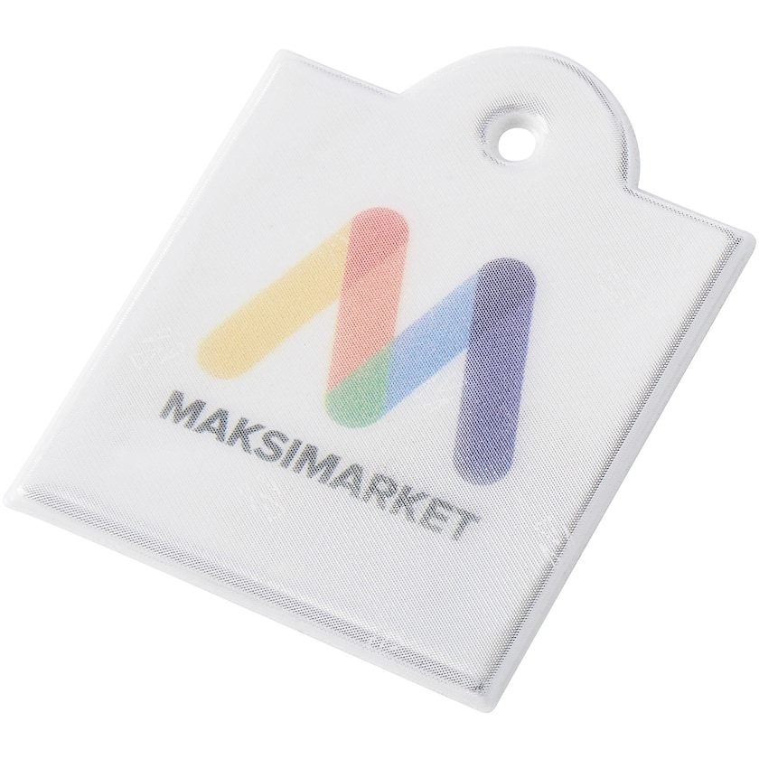 Mjukreflex i form av en shoppingkasse. Reflexen levereras antingen med säkerhetsnål och snöre eller med kullänk. Reflexmaterial kan antingen fås i vit eller gul färg. Reflexmaterialet uppfyller kraven i EN13356:2001. För att inte negativt påverka reflexförmågan sker trycket under reflexytan.