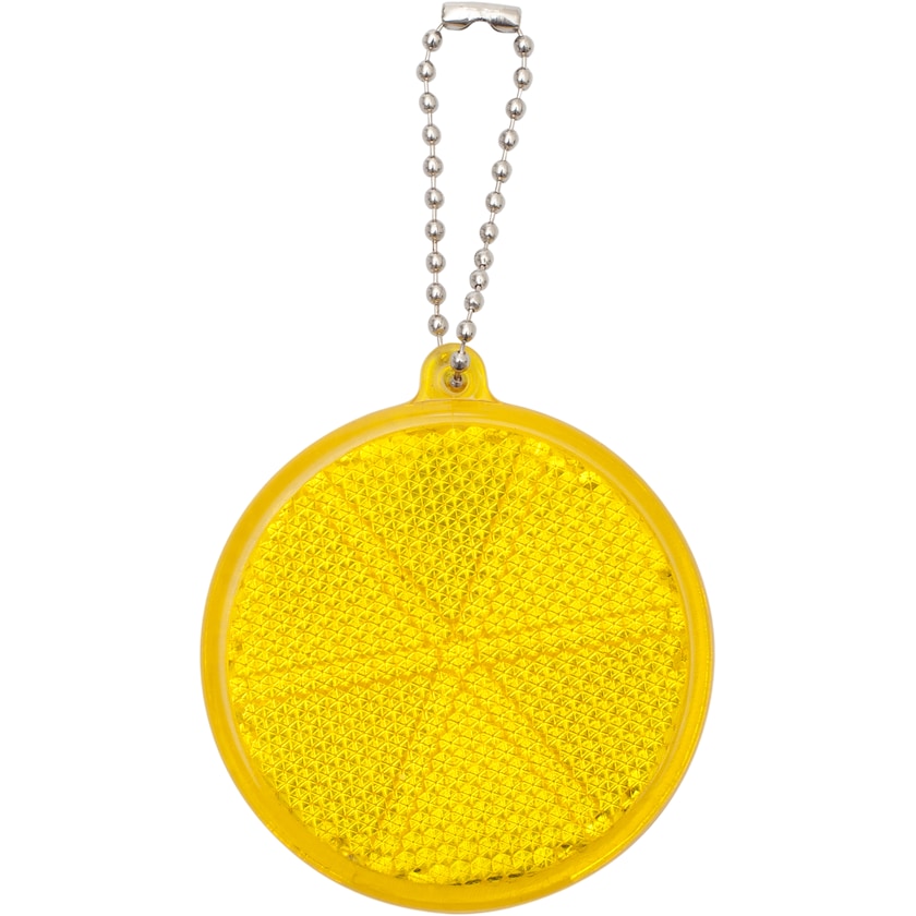 Rund reflexbricka med kullänk av metall. Häng den på ryggsäcken eller på jackan. En profilprodukt för liten som stor!