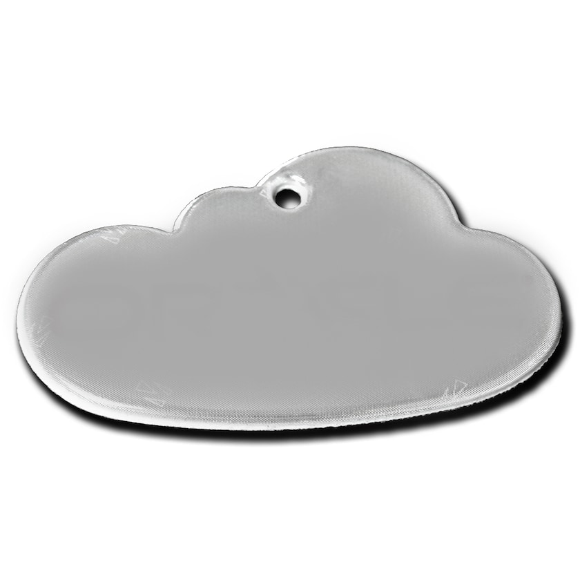 Reflex i form av ett moln. Reflexen är tillverkad av ett mjukt reflexmaterial och levereras antingen med snöre och säkerhetsnål eller med kullänk. Godkänd i enlighet med EN13356:2001. För att inte reflexförmågan ska påverkas negativt sker trycket under reflexytan.