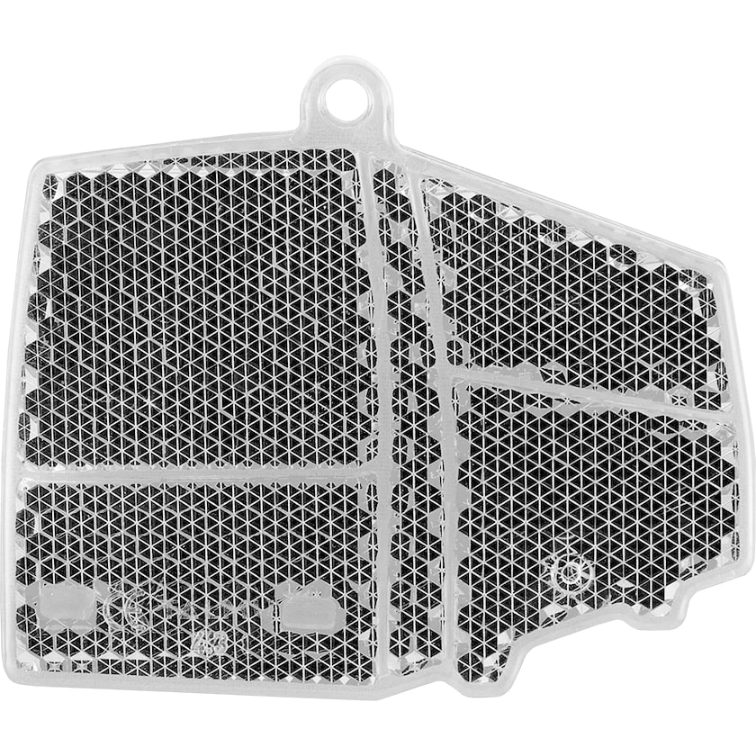 Reflexbricka i hårdplast formgiven som en buss. Perfekt för bussbolag och resebyråer. Producerad i Europa och godkänd enligt CE EN 17353:2020 B1. Fås med antingen snöre och säkerhetsnål eller kullänk.