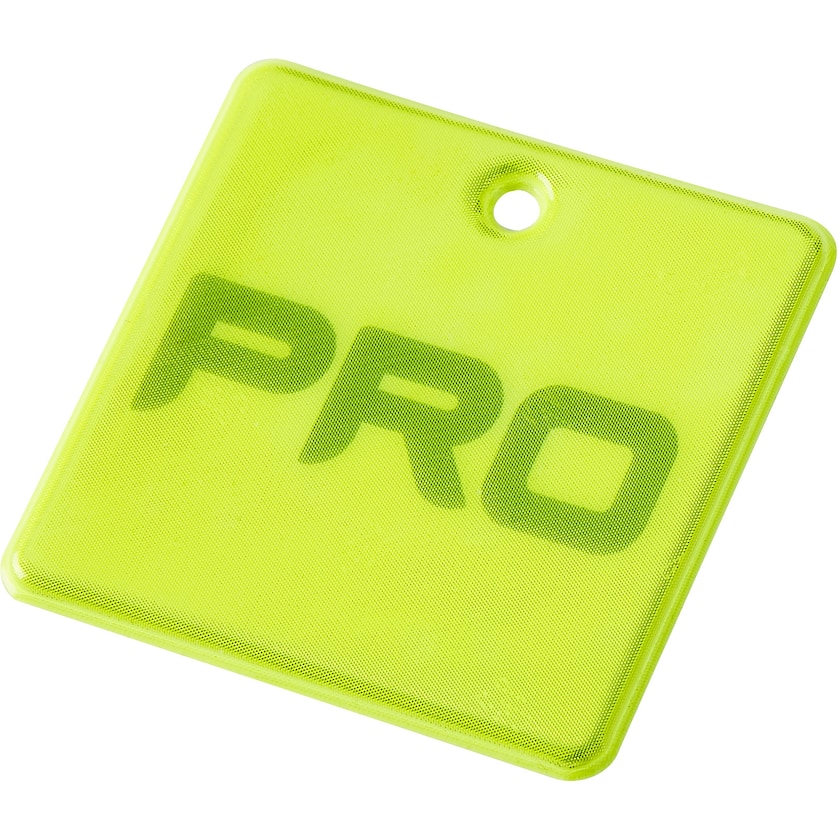 Kvadratisk mjukreflex tillverkad av 3M Scotchlite-material. Levereras med snöre och säkerhetsnål eller med kullänk. Godkänt reflexmaterial i enlighet med EN13356:2001. Trycket sker under reflexytan.