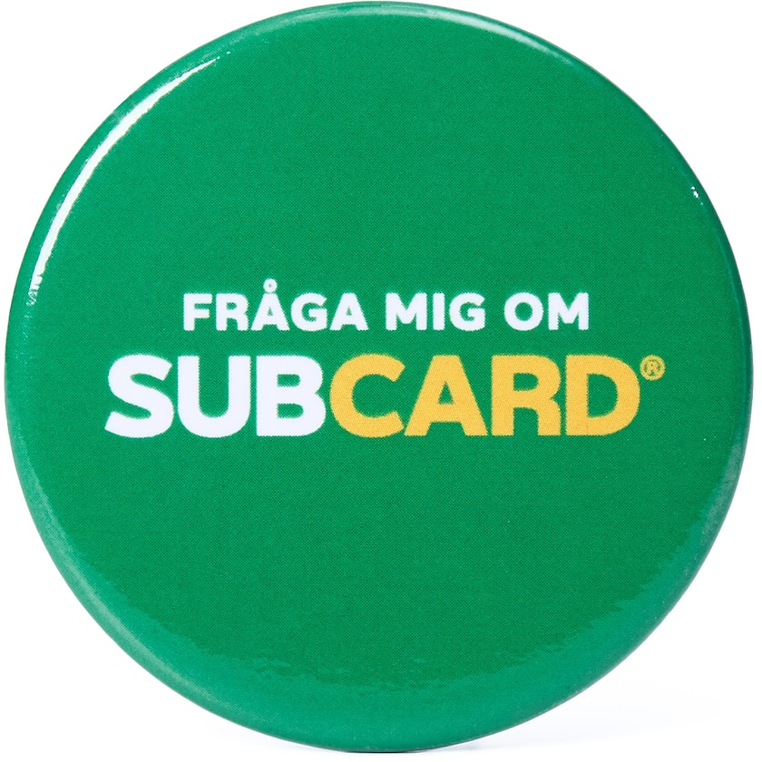 Rund reklamknapp med säkerhetsnål. En klassisk reklamprodukt till lågt inköpspris.