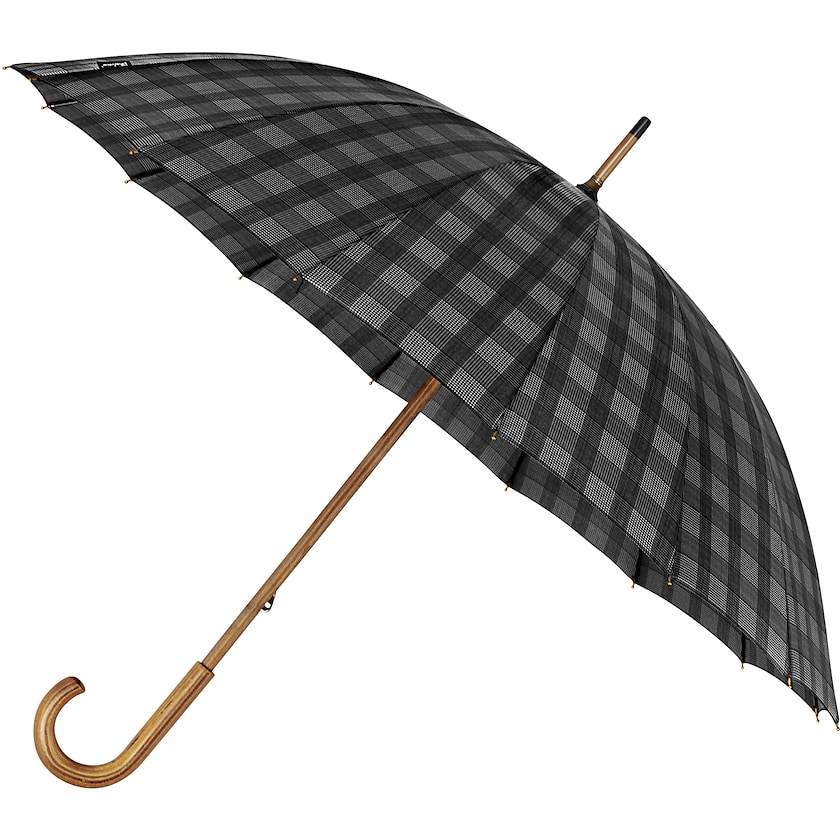 Paraply med snyggt mönstrat tyg. Broderick har 16 paneler, handtag av trä och ribbor av svart glasfiber. Ett lyxigt och väldesignat paraply.