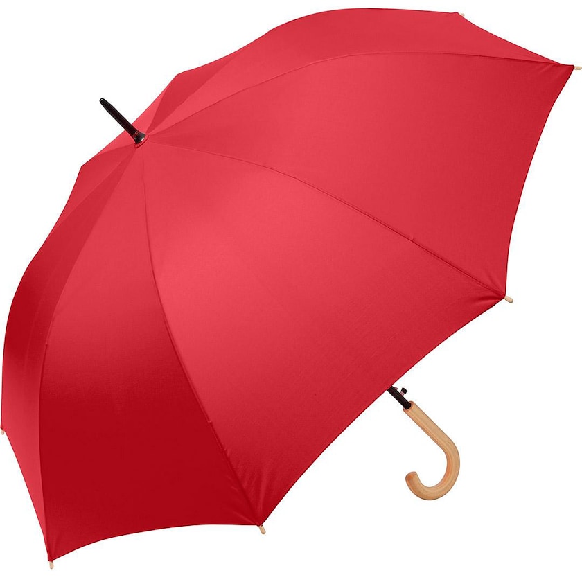 Miljövänligt golfparaply med tyg av återvunnen polyester. Paraplyet har detaljer av äkta trä och återvunnen plast. Handtaget är av trä. Tyget är färgat med en miljövänlig metod som inte kräver lika mycket vatten som vanligt.