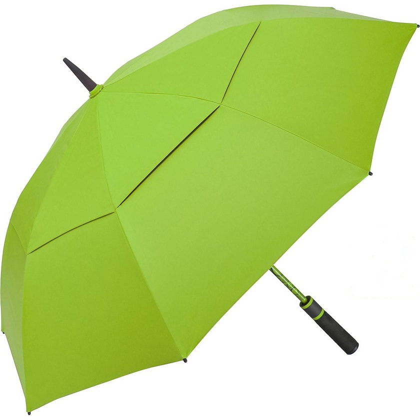 Stort golfparaply med stormsäker konstruktion. Ribbor och paraplystång är av tålig glasfiber. Tyget är gjort av återvunnen polyester och är sytt med en överlappande överdel som gör paraplyet mindre vindkänsligt. Handtaget är skönt gummerat.