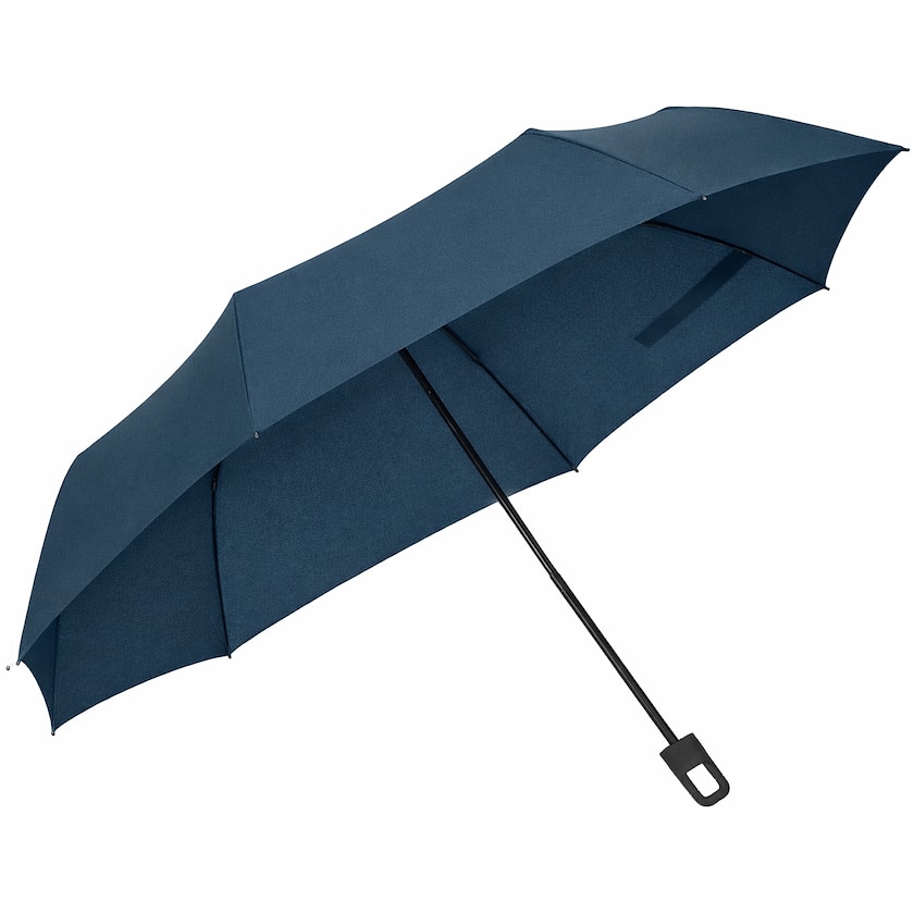 Paraply med handtag som också fungerar som karbinhake. Dunkinfield har tre sektioner samt manuell öppning och stängning. Tyget är gjort av rPET, paraplystången av metall och paraplyribborna av glasfiber.