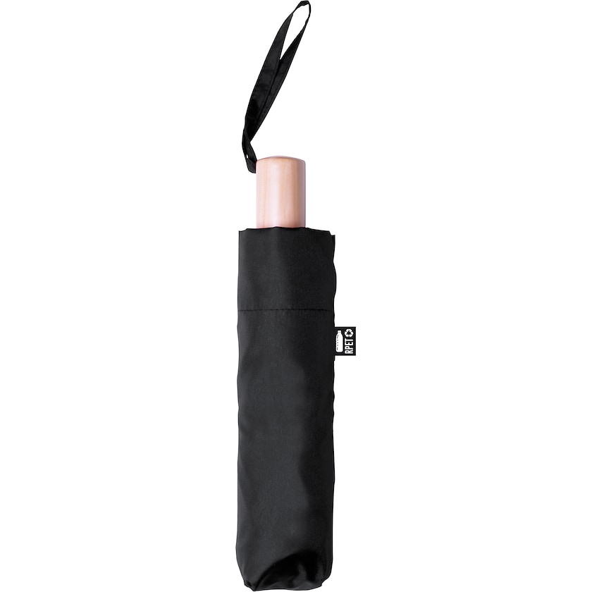 Miljövänligt stormparaply i kompakt format. Paraplyet har metallstång, ribbor av glasfiber och handtag av trä. Tyget är tillverkat av miljövänlig rPET.
