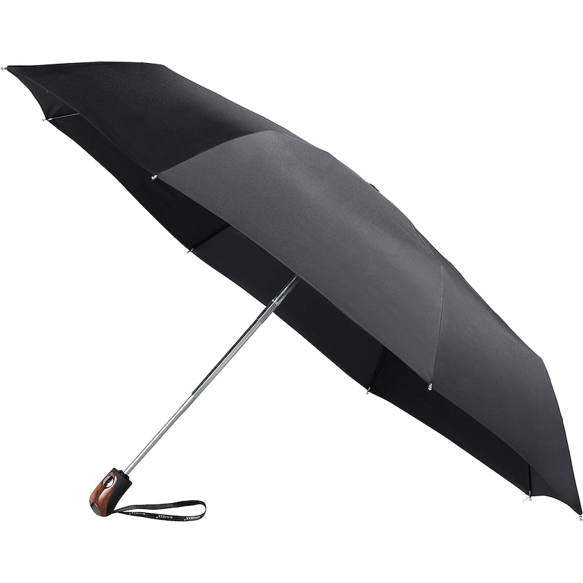 Paraply av hög kvalitet med förstärkt konstruktion för blåsiga dagar. Paraplyet är uppbyggt i tre sektioner. Handtaget är av polerat trä. Levereras med förvaringsfodral.