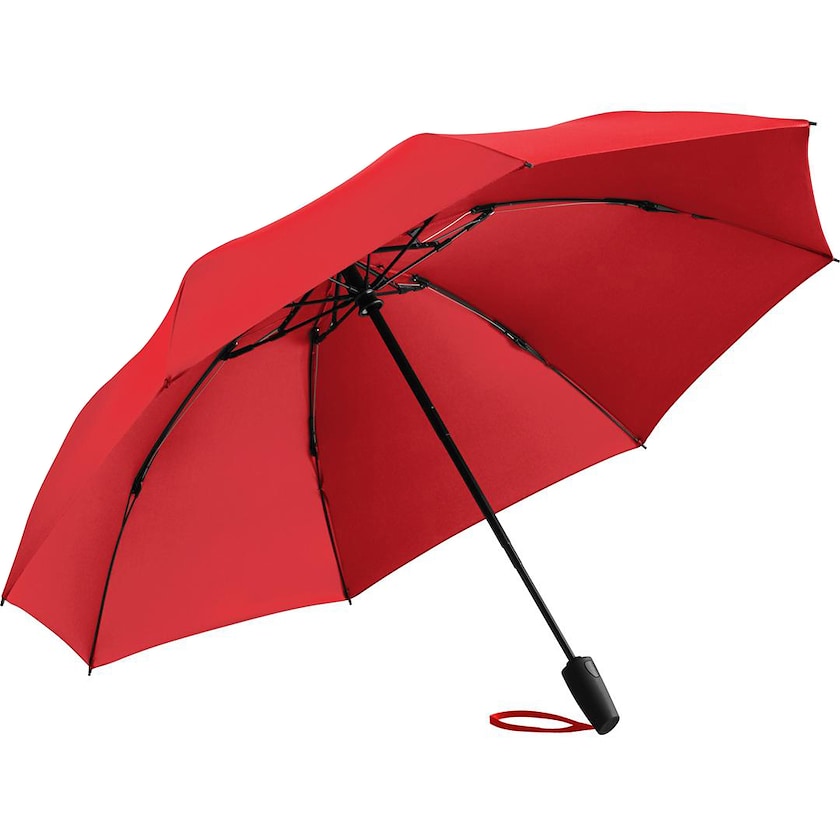 Rubust kompaktparaply som klarar riktigt stormigt väder. Paraplyet har en ytterst robust konstruktion av glasfiber. Konstruktionen öppnas utåt vilket minskar risken för att ribborna knäcks vid kraftiga vindbyar. Öppning och stängning sker automatiskt. Handtaget har en behaglig soft-touch-yta.