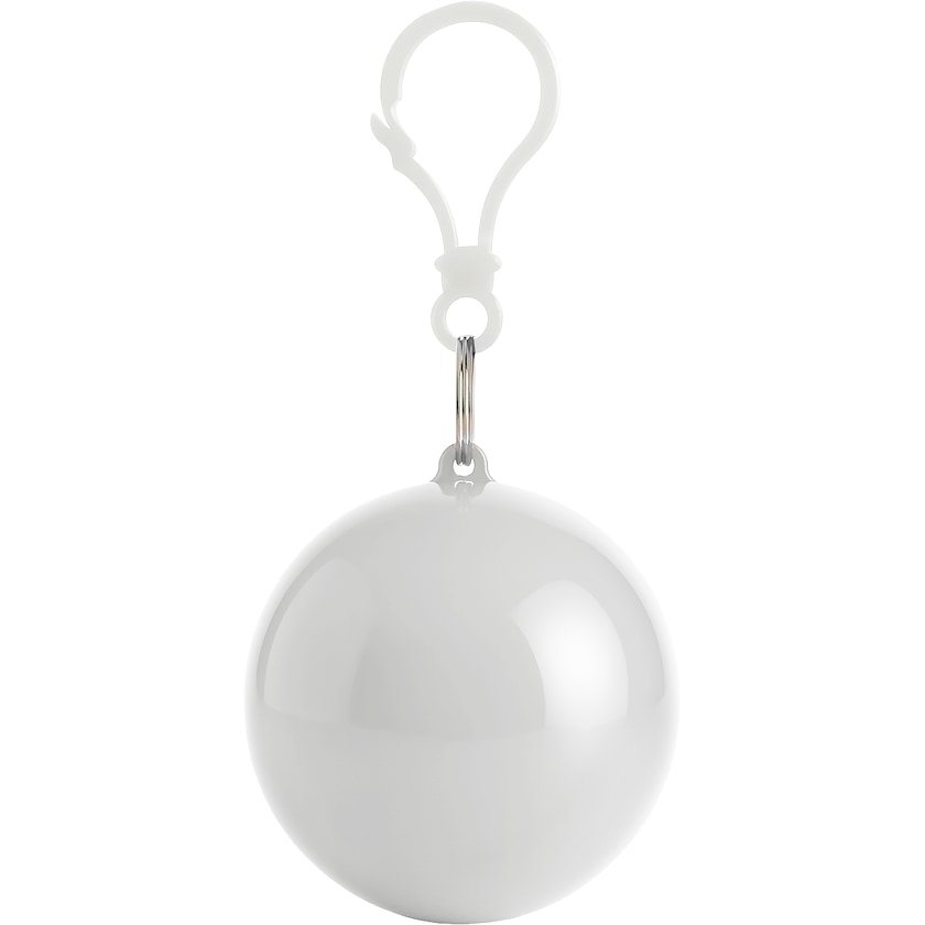 Regnponcho av engångstyp i smart förvaringsboll som du kan fästa i nyckelringen. Låt dig aldrig överraskas av regnskuren!