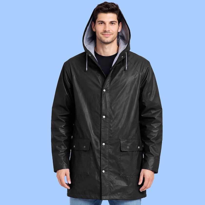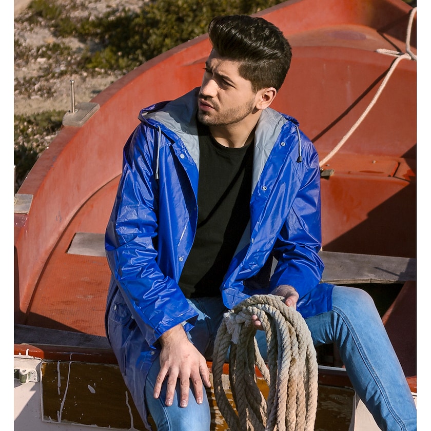 Rejäl regnkappa av god kvalitet. Regnkappan är försedd med tryckknappar och har två fickor framtill. Endast 1-färgstryck är möjligt. Beställ regnkappor med eget tryck hos Axon Profil!