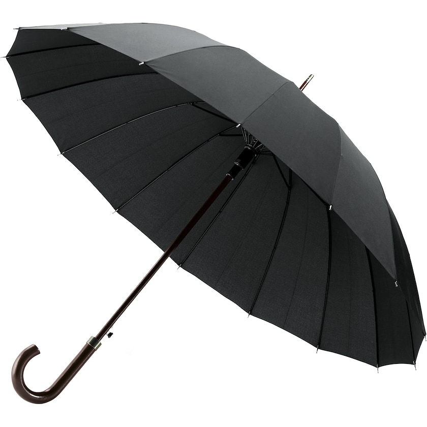 Automatiskt paraply med 16 paneler. Paraplyet har ett vackert handtag av trä. Tack vare att paraplyet har många paneler så är det extra stabilt och hållbart.