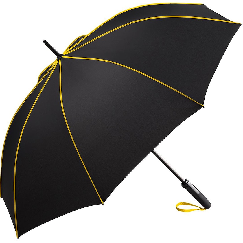 Högkvalitativt paraply med karaktäristisk design. Paraplyet har en förstärkt konstruktion som klarar kraftig blåst. Ribborna är tillverkade av glasfiber och paraplystången är tillverkad av galvaniserat stål. Paraplyet öppnas med en enkel knapptryckning.
