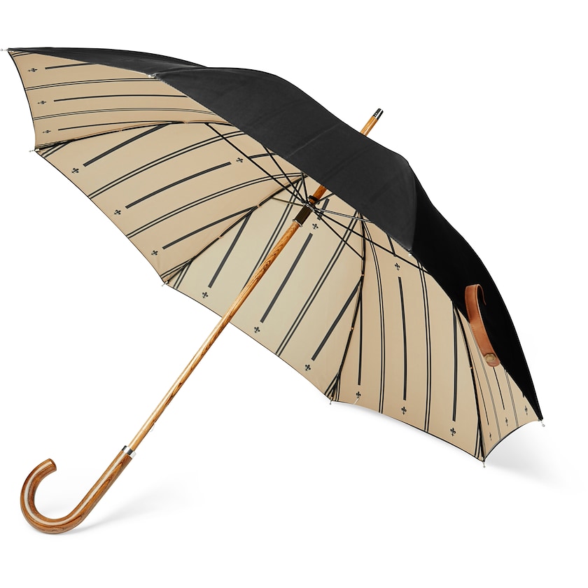 Högkvalitativt paraply med spännande design. Tyget är tillverkat av återvunnen PET och har ett innerfoder med elegant design. Ribborna är av glasfiber och handtaget är gjort av tålig kompositträ.