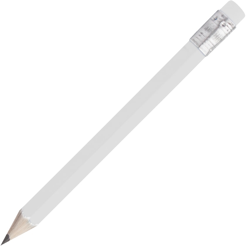 Liten blyertspenna med suddgummi. Suddgummit matchar blyertspennans färg. Levereras vässad.