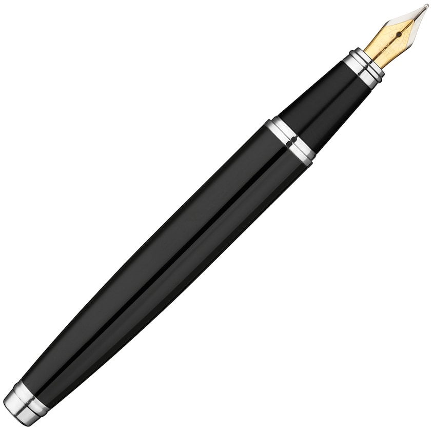 Exklusiv reservoarpenna med lock. Svart pennkropp med kromade detaljer. Beställ reservoarpennor med tryck hos Axon Profil!