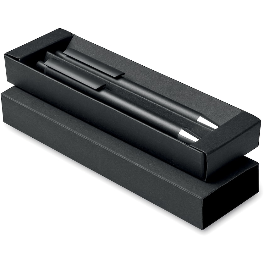 Pennset med en kulspetspenna och en grafitpenna. Kulspetspennan har blått bläck. Levereras i en presentlåda av återvunnet papper.