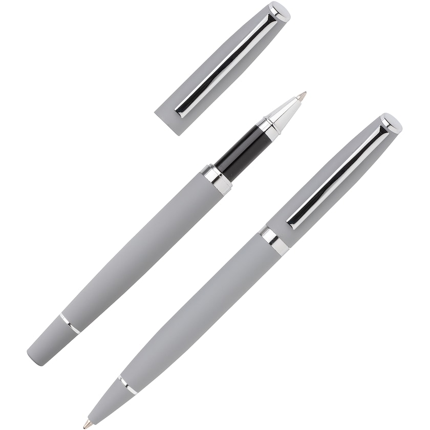 Elegant pennset med matt yta. Setet innehåller en kulspetspenna och en bläckpenna. Tack vare den matta ytan är pennorna mycket behagliga att hålla i .