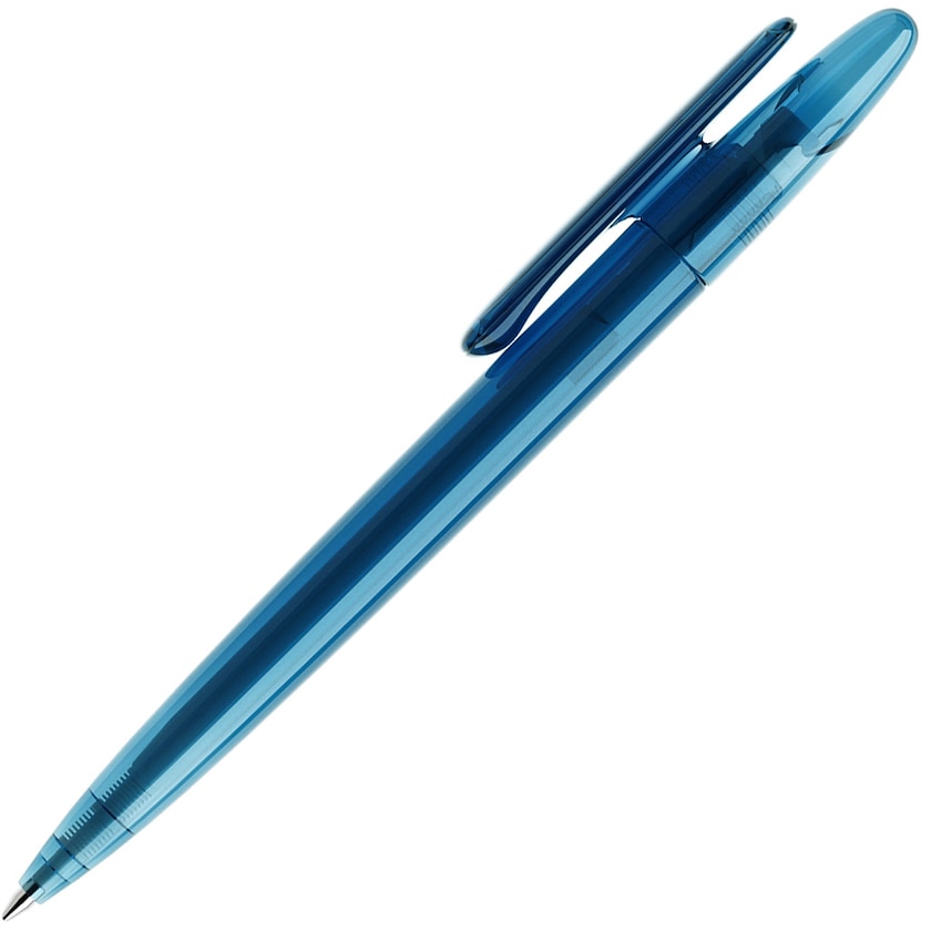 Transparent reklampenna i mjuka former. Finns i många trendiga färger. Prodir DS5 TTT har vridmekanism och du väljer fritt mellan blått eller svart bläck. Tillverkad och tryckt i Schweiz.