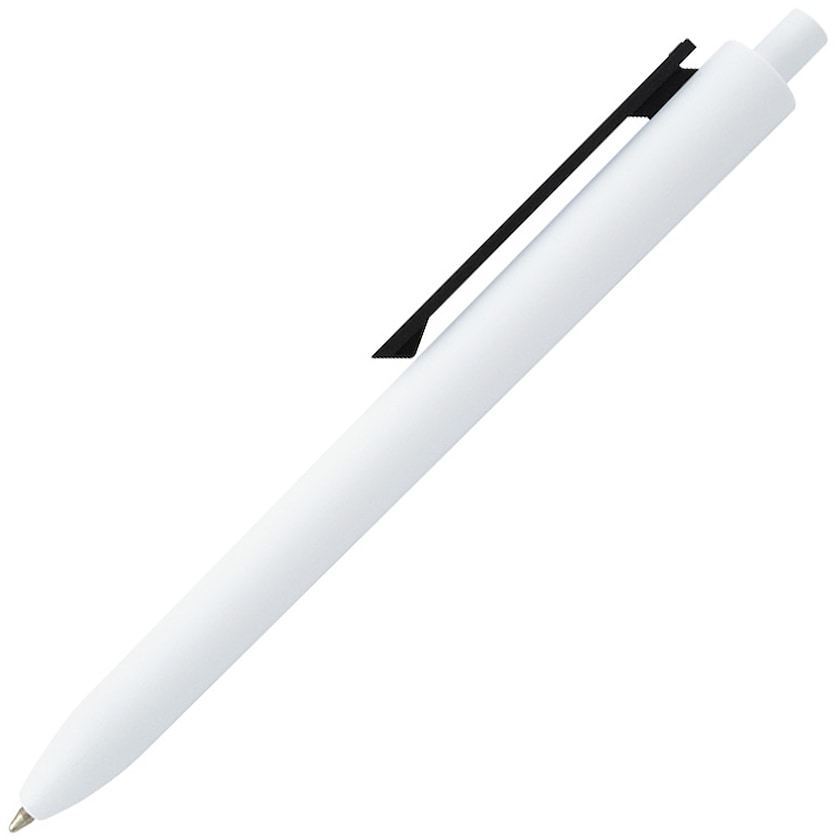 Vit reklampenna med stort färgat klips. Tryck är möjligt både på pennkroppen och på klipset. Välj mellan blått eller svart bläck.
