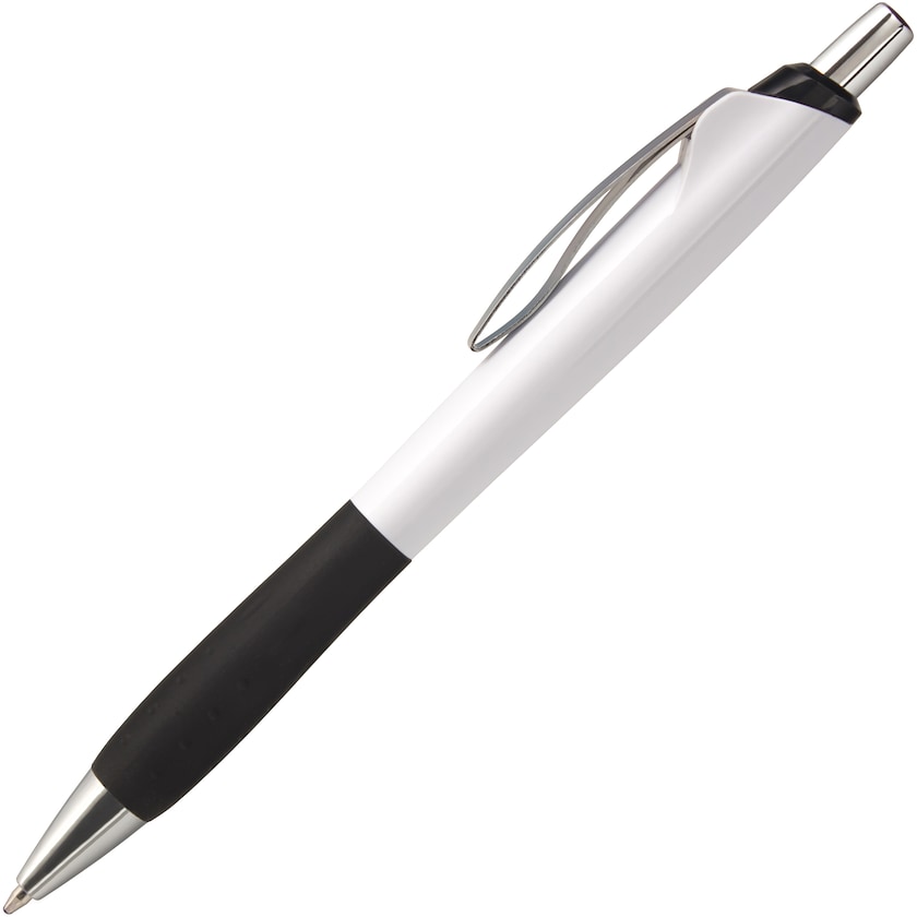 Vit penna med stort bekvämt grepp. Tack vare de kromade detaljerna känns pennan dyrare än den i själva verket är. En penna som kombinerar funktion och design på ett ypperligt sätt.
