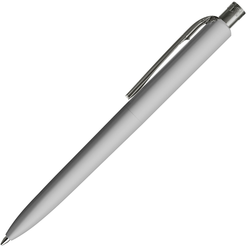 Prodir DS8 med soft touch-yta. Klips och tryckknapp är i färgad transparent ABS. Välj mellan blått eller svart bläck.