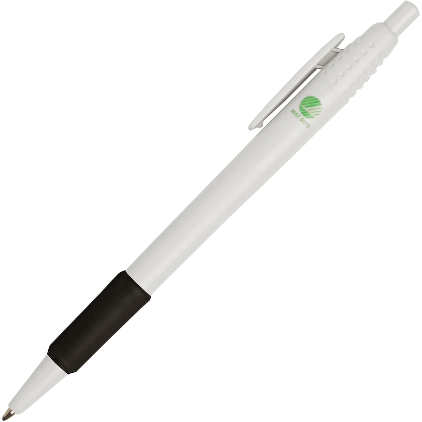 Svanenmärkt penna tillverkad av 100% returplast. Pennan har ett bekvämt gummigrepp och miljövänligt blått bläck. Beställ pennor med tryck med svanenmärkning hos Axon Profil!