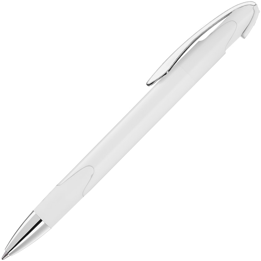 Reklampenna med solid pennkropp, kromade detaljer och bekvämt grepp.