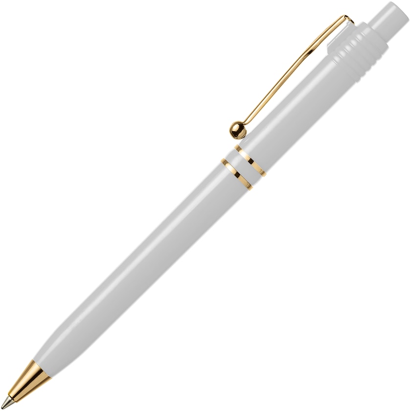Penna med guldkrom med ett lite annorlunda klips. Bläcket är dokumentäkta i enlighet med ISO 12757-2. Pennan är tillverkad i Europa.
