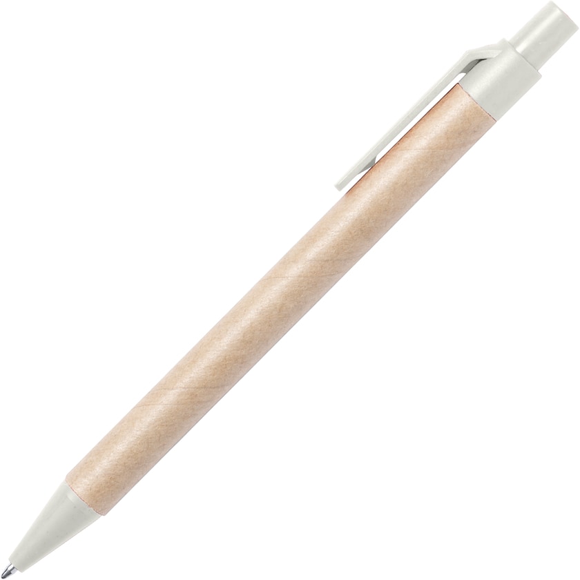 Miljövänlig penna av återvunnet papper och vete-halm-plast. Pennan har blå bläckpatron.