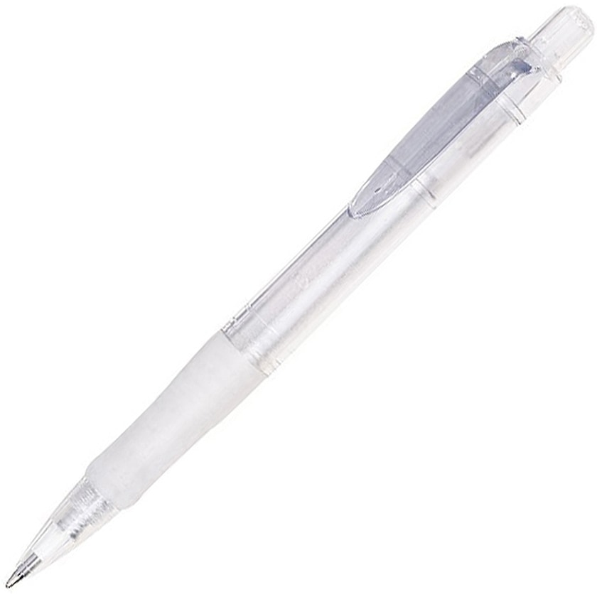 Prisvärd penna i transparent färg och bekvämt gummigrepp.