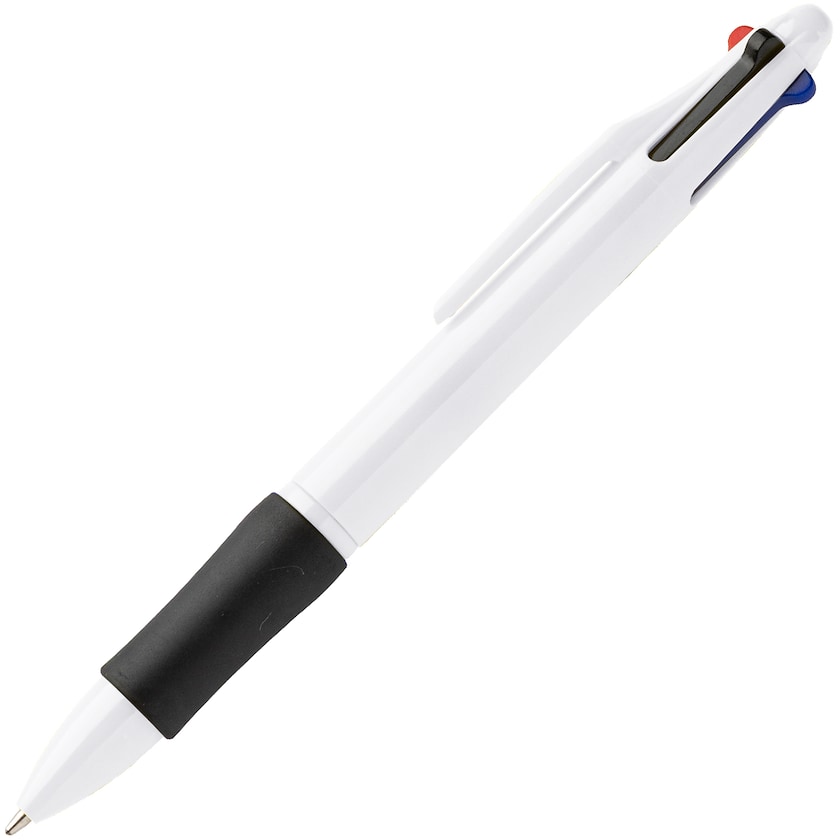 Penna med svart, blått, rött och grönt bläck. Multipenna Keith har ett gummigrepp som gör den bekväm att skriva med. Tillverkad av återvunnen ABS.