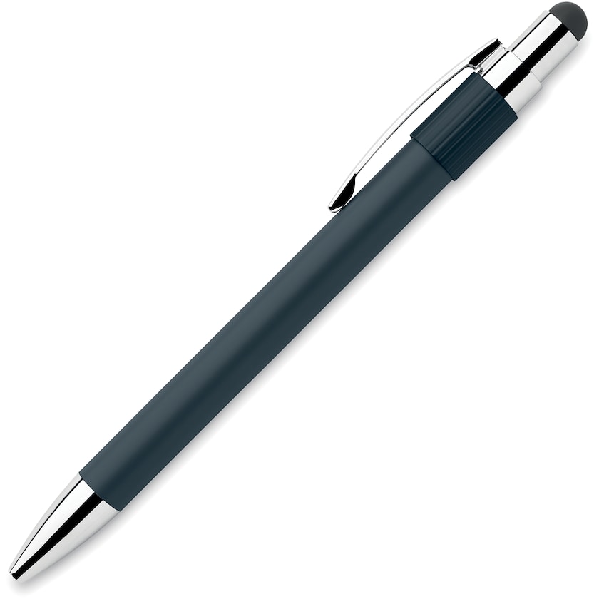 Touchpenna med anti-stress-spinner högst upp. Britton är tillverkad av aluminium och har blått bläck.