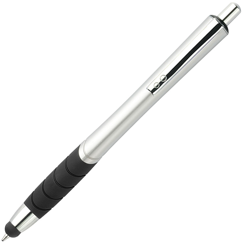 Med ett enkelt tryck skiftar denna penna från kulspetspenna till touchpenna. Pennan kan tryckas med maximalt två tryckfärger. En genialisk penna till ett bra pris!
