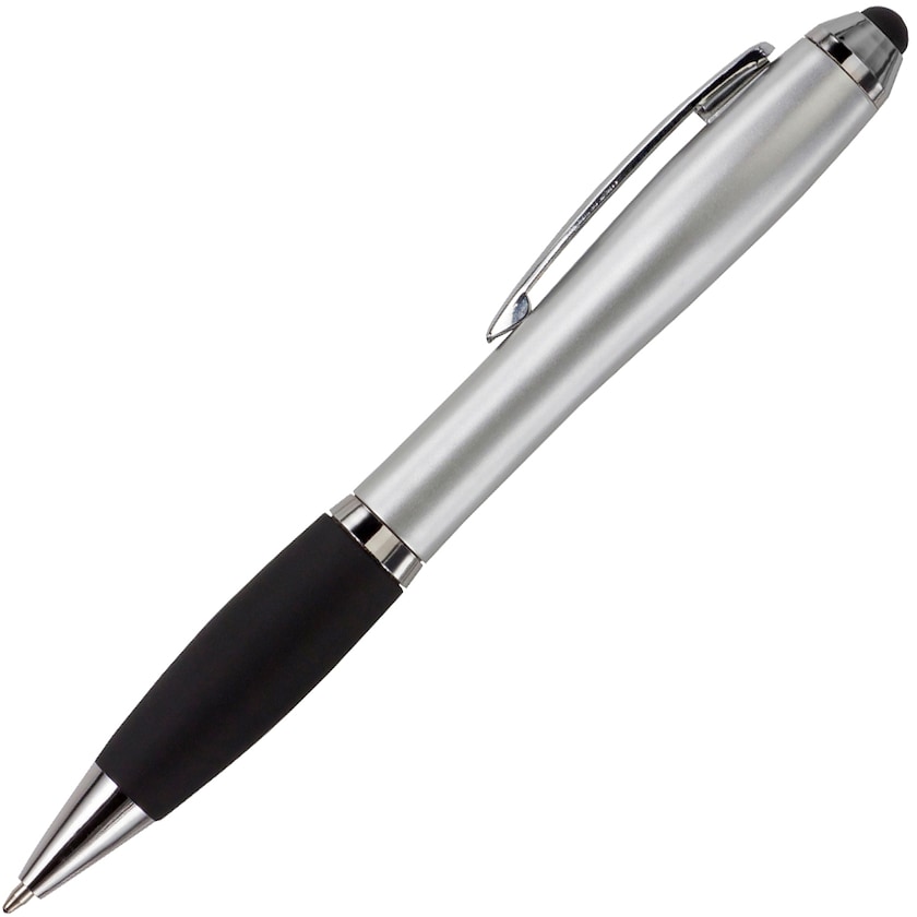 Prisvärd touch- och kulspetspenna med bekvämt grepp av gummi. Pennan har svart bläck.