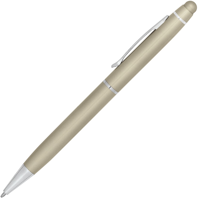 Elegant touchpenna av metall. Pennan har blått bläck och en diskret touchfunktion upptill. Märkning kan ske med tryck eller lasergravyr.
