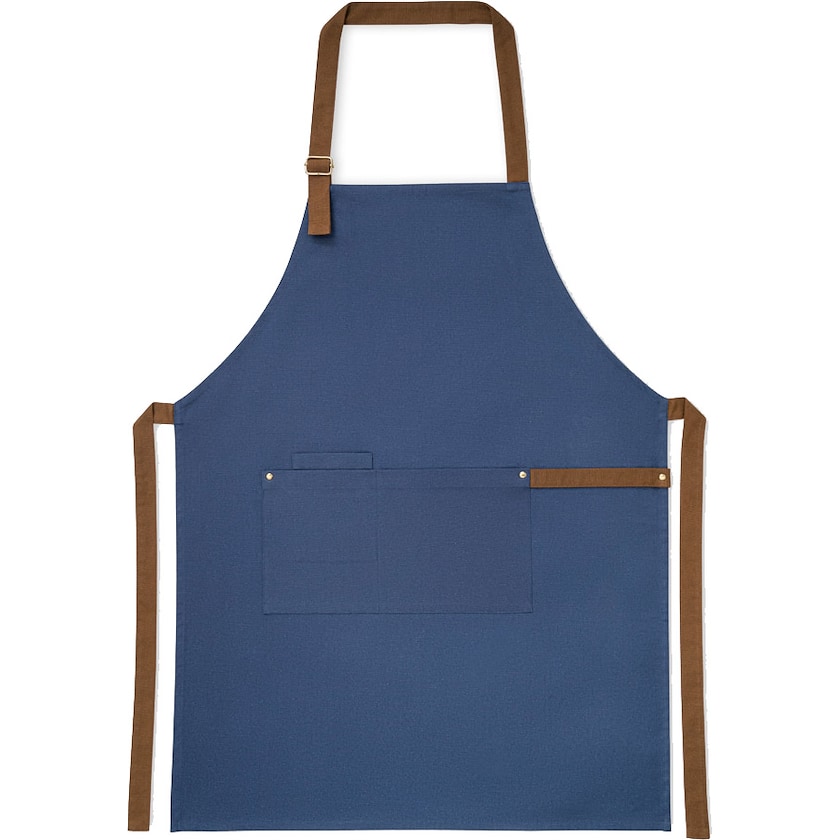Förkläde av bomullscanvas med detaljer av metall. Förklädet har tre smarta fickor och en sidoslits där t ex en kökshandduk kan hängas. Levereras i en naturfärgad pappkartong av FSC-certifierad kartong.