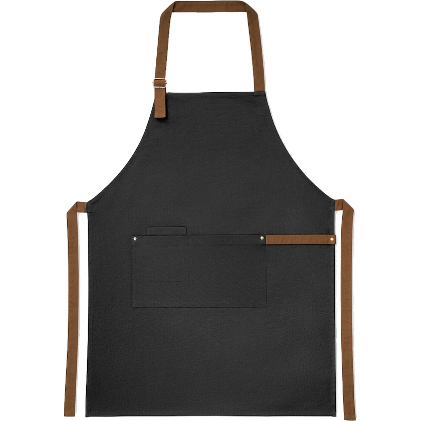 Förkläde av bomullscanvas med detaljer av metall. Förklädet har tre smarta fickor och en sidoslits där t ex en kökshandduk kan hängas. Levereras i en naturfärgad pappkartong av FSC-certifierad kartong.