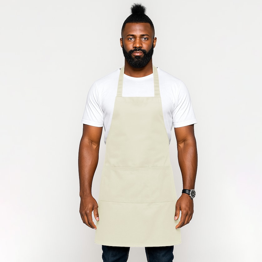 Högkvalitativt förkläde av ekologisk bomull. Halsremmen är justerbar. Framtill finns en stor ficka med två fack. Tyget väger 240 gram/ m² och är certifierat enligt OEKO-TEX® STANDARD 100.