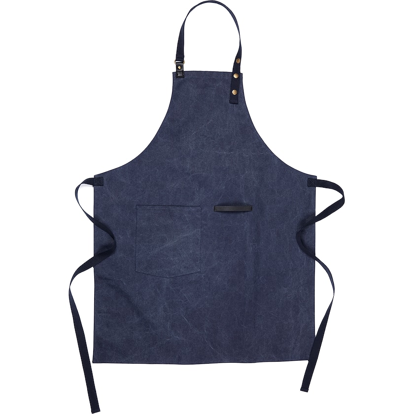 Exklusivt förkläde av återvunnen bomullscanvas. Tyget är gjort av 87% återvunnet material. Framtill finns en ficka samt en ögla för att hänga redskap eller kökshanddukar. Förklädet har ett mjukt och justerbart nackband.