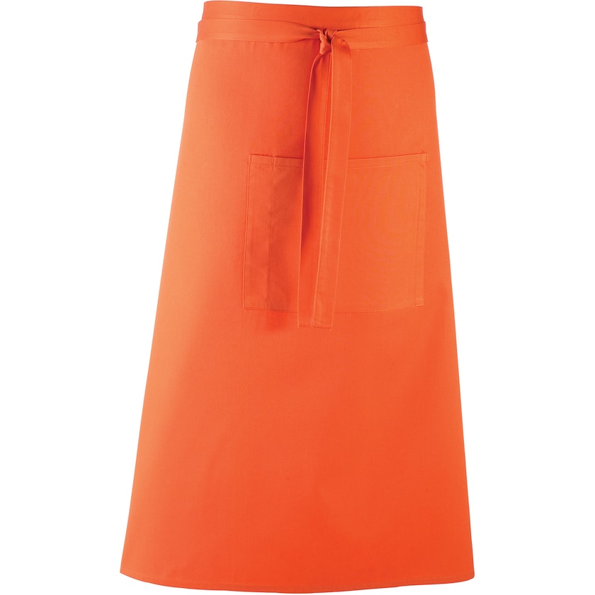 Långt förkläde från Premier som finns i ett stort antal färger. Premier PR158 har en stor ficka framtill med kombinerad pennficka. Klarar maskintvätt i 60 grader. Förklädena levereras styckförpackade i plastpåse.