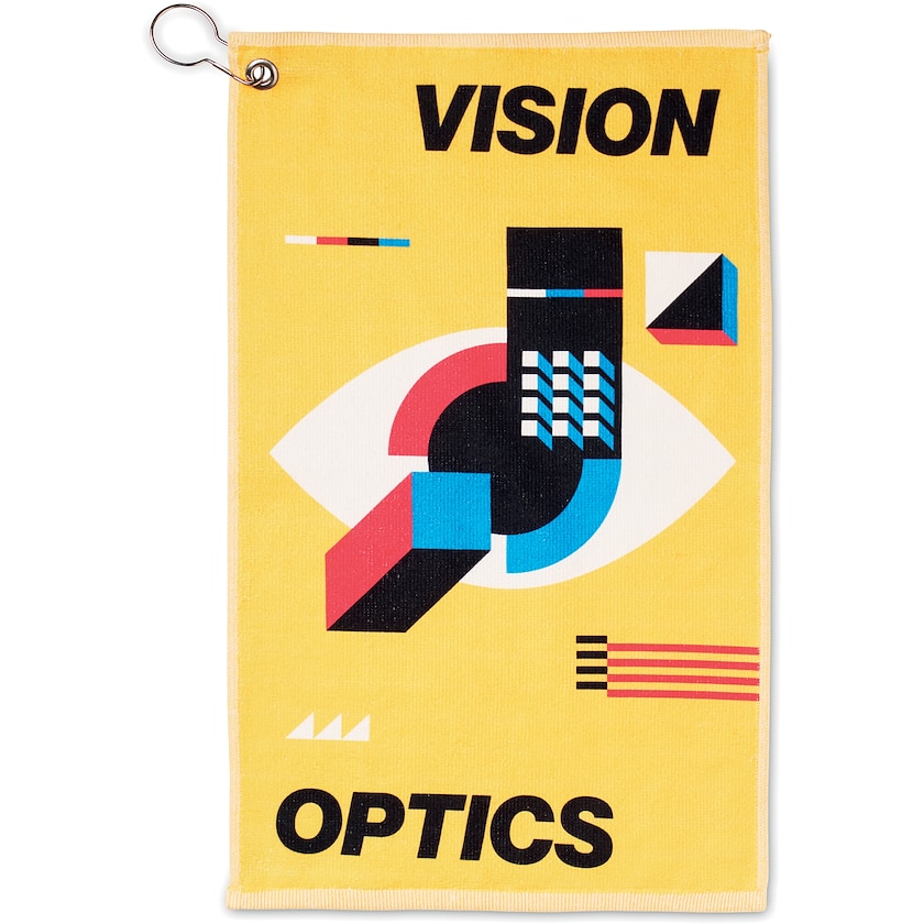 Golfhandduk med tryck över hela framsidan. Handduken är tillverkad av 50% polyester och 50% bomull. I ena hörnan finns en öppningsbar metallögla. Baksidan har maximal absorptionsförmåga. Eftersom handdukarna digitaltrycks kan färgerna skilja sig 15% mot godkänd skiss. Levererat antal kan skilja sig +/- 10% (levererat antal faktureras). Eftersom handdukarna tillverkas efter beställning är leveranstiden längre än normalt.