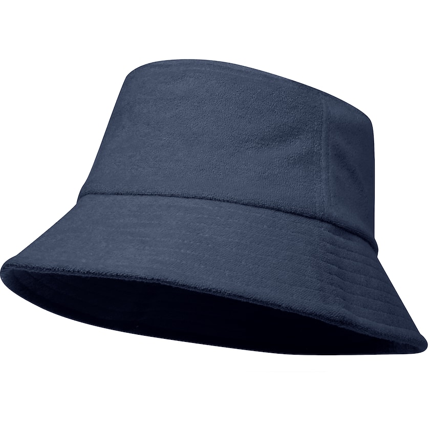 Solhatt av frotté av återvunnen polyester. Hatten har en huvudomkrets på 58 cm vilket passar de flesta.