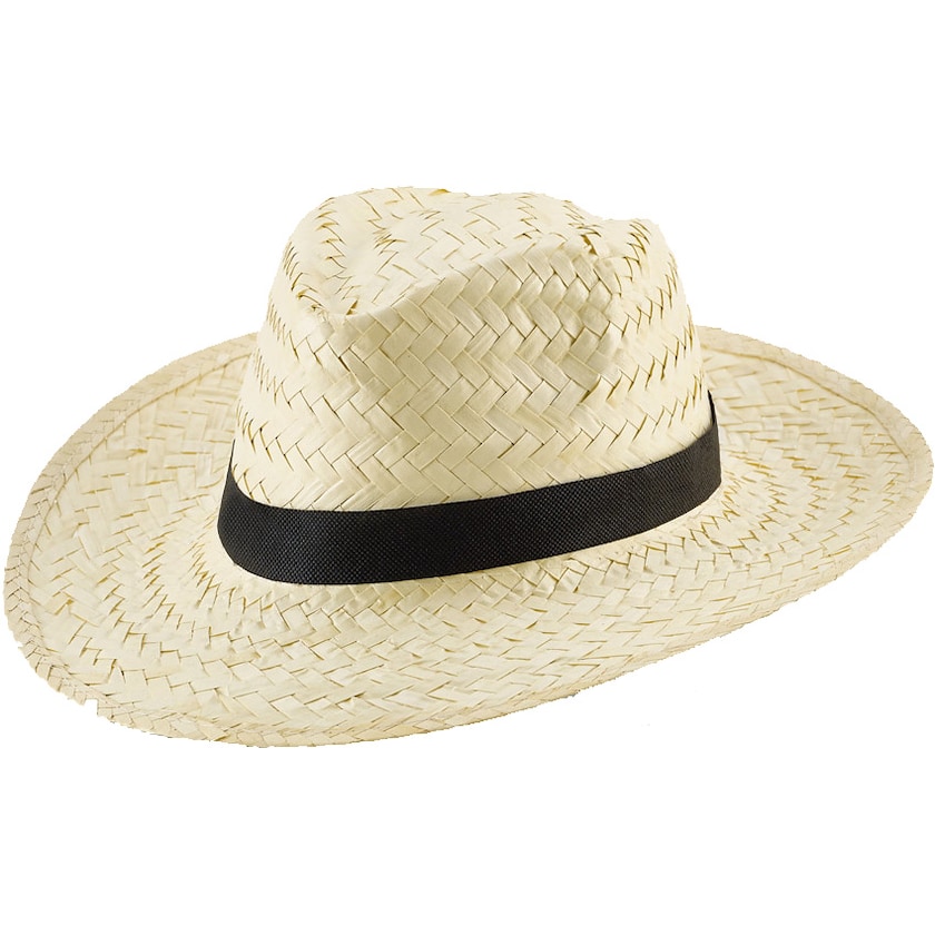 Hatt av äkta halm med band med eget tryck. Välj mellan vitt eller svart hattband. Bandet är tillverkat av polyester.